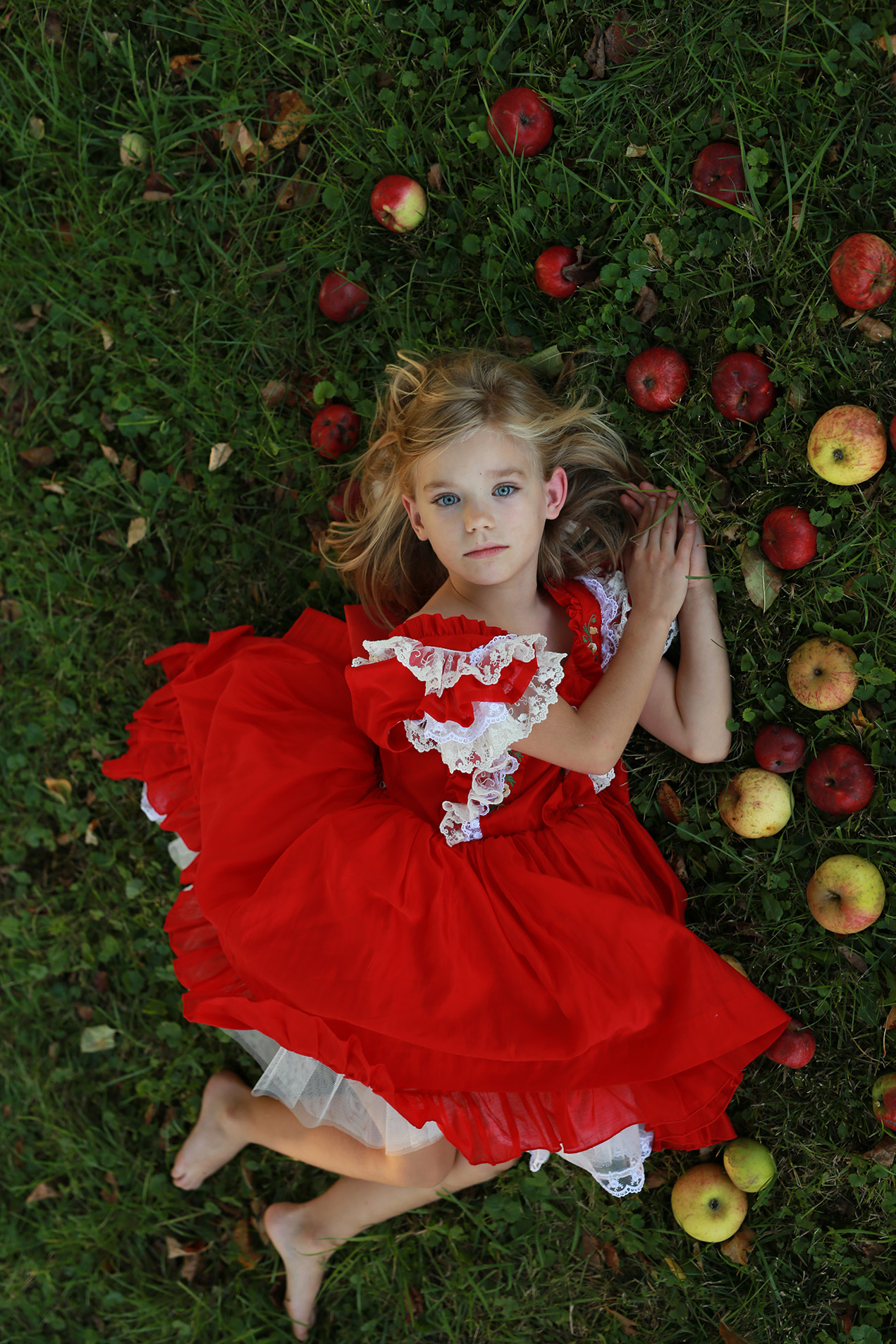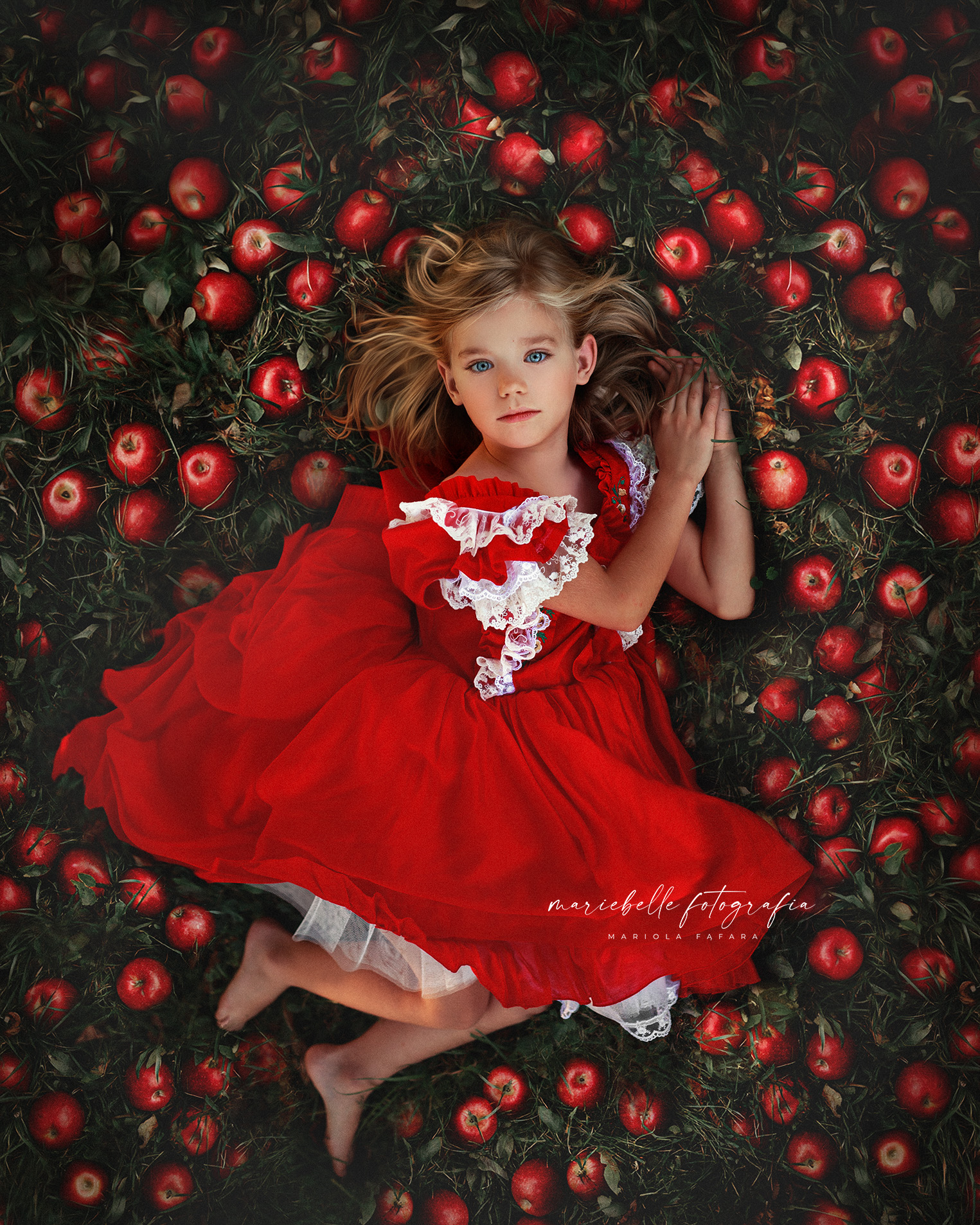 🔹 podmienić tło i stworzyć magiczną scenę z rozsypanymi jabłuszkami,